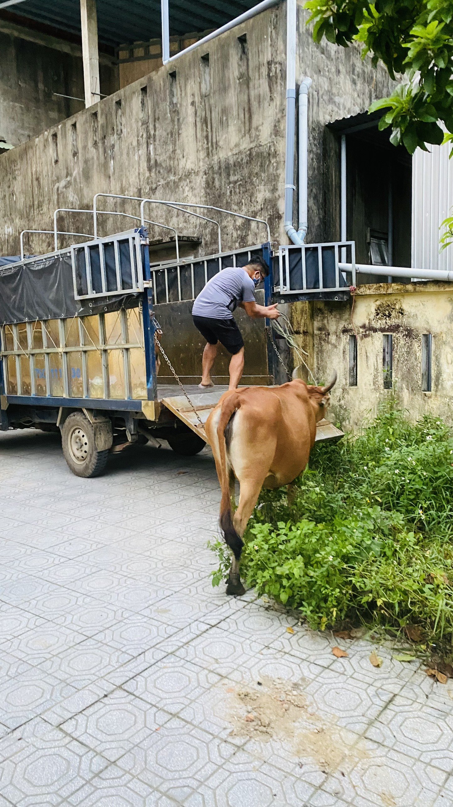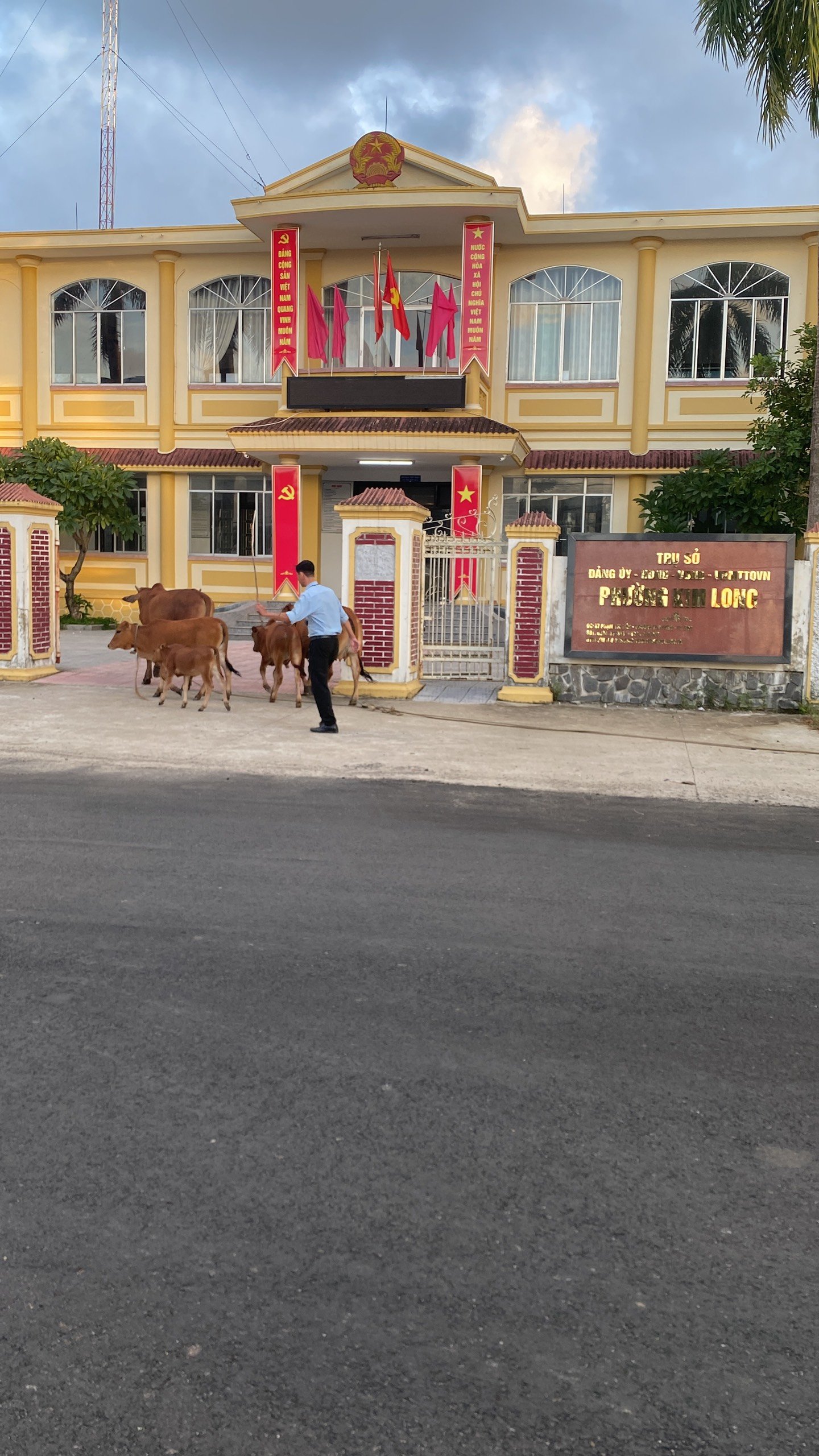 Cán bộ xử lý dắt bò thả rông về UBND phường (Ảnh: Hue-S)
