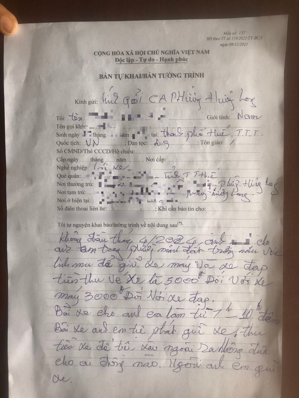Lực lượng chức năng kiểm tra và yêu cầu lập bản tường trình về hành vi trên