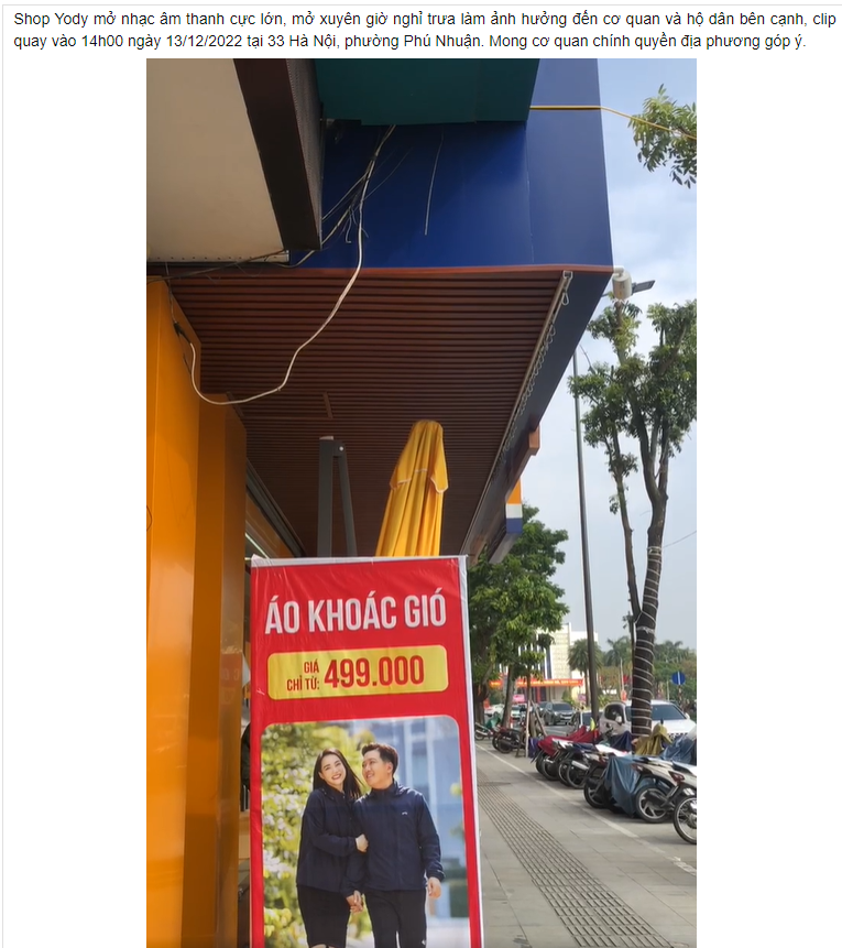 Phản ánh của người dân về tình trạng ô nhiễm tiếng ồn tại cửa hàng áo quần Yody - 33 Hà Nội.