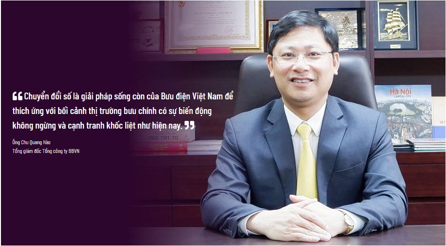 Tổng giám đốc Tổng công ty BĐVN Chu Quang Hào cho biết, BĐVN hiện đang chuyển đổi mạnh mẽ, toàn diện trên tất cả các lĩnh vực với mục tiêu chuyển dịch từ dịch vụ bưu chính truyền thống sang dịch vụ bưu chính số, đảm bảo dòng chảy vật chất bên cạnh dòng chảy dữ liệu. CĐS là giải pháp sống còn của BĐVN để thích ứng với bối cảnh thị trường bưu chính có sự biến động không ngừng và cạnh tranh khốc liệt như hiện nay.