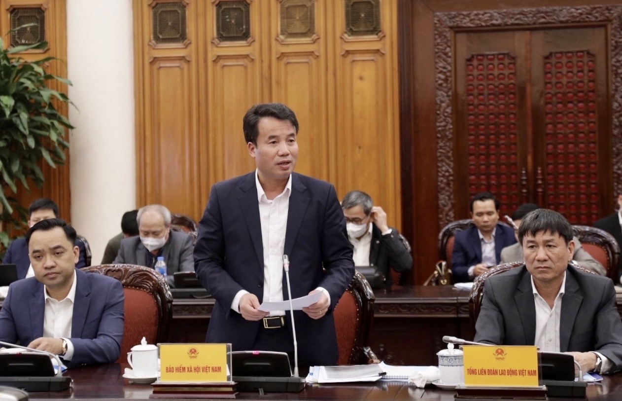 Tổng Giám đốc BHXH Việt Nam Nguyễn Thế Mạnh phát biểu ý kiến tại cuộc làm việc, báo cáo những kết quả nổi bật trong tham gia xây dựng chính sách, pháp luật về bảo hiểm - Ảnh: VGP/Nhật Bắc