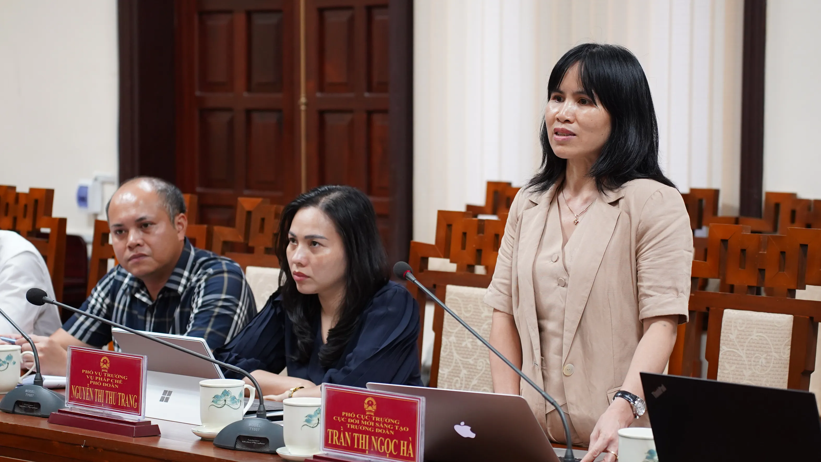 Bà Trần Thị Ngọc Hà - Phó Cục trưởng Cục Đổi mới sáng tạo, Bộ KH&CN phát biểu tại buổi làm việc