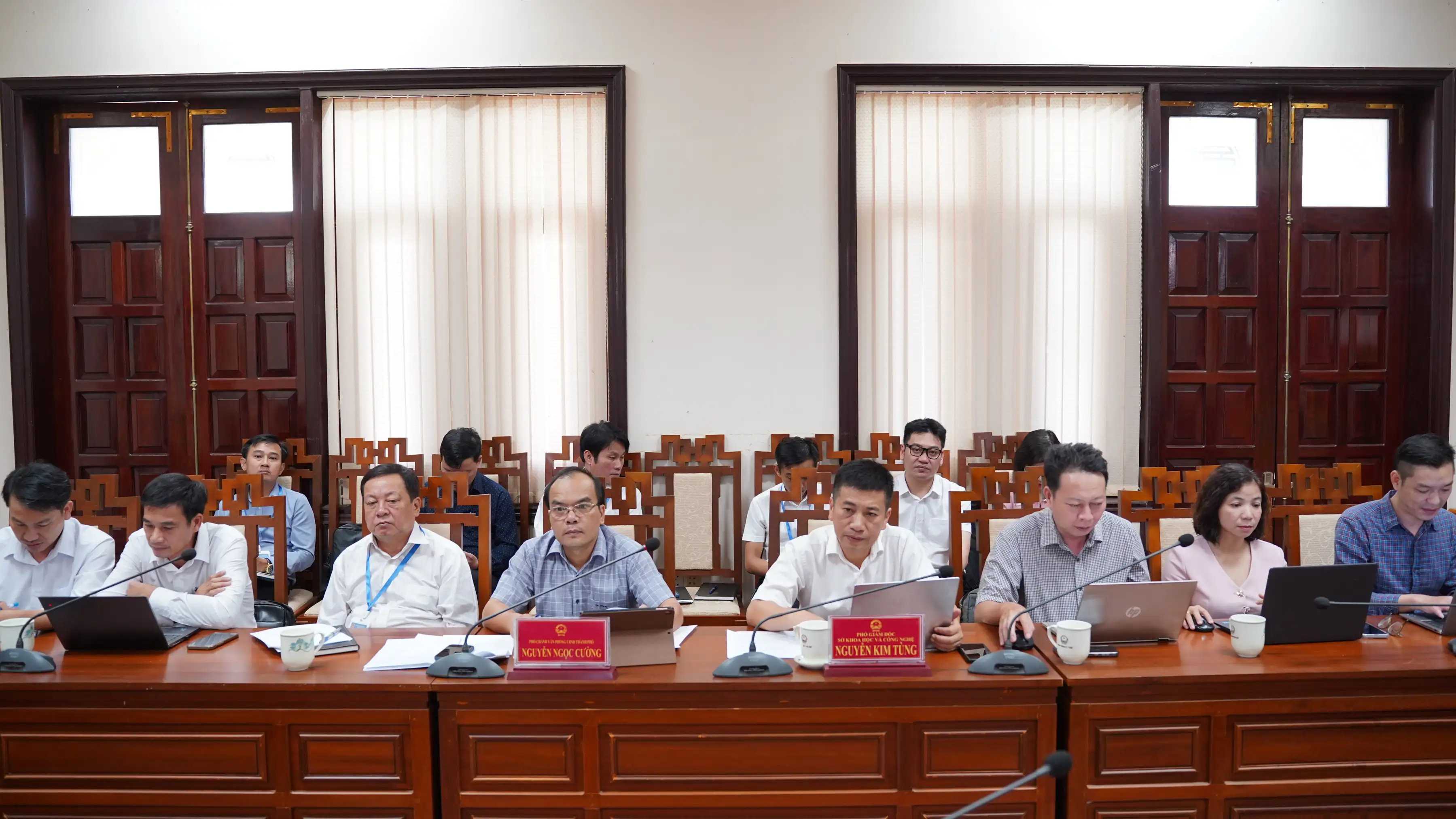 Tham dự buổi làm việc có đại diện lãnh đạo, chuyên viên các đơn vị trực thuộc Bộ KH&CN. Về phía thành phố Huế có ông Nguyễn Kim Tùng - Phó Giám đốc Sở KH&CN; ông Nguyễn Ngọc Cường - Phó Chánh Văn phòng UBND thành phố; đại diện lãnh đạo Trung tâm Công nghệ thông tin và các phòng chuyên môn thuộc Sở KH&CN và đại diện lãnh đạo các địa phương Đoàn Công tác đến làm việc.
