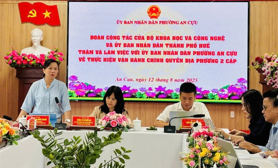 Trong khuôn khổ buổi làm việc với thành phố Huế, Đoàn công tác của Bộ KH&CN và UBND thành phố Huế đã có buổi làm việc với UBND phường An Cựu về thực hiện vận hành chính quyền địa phương 2 cấp.