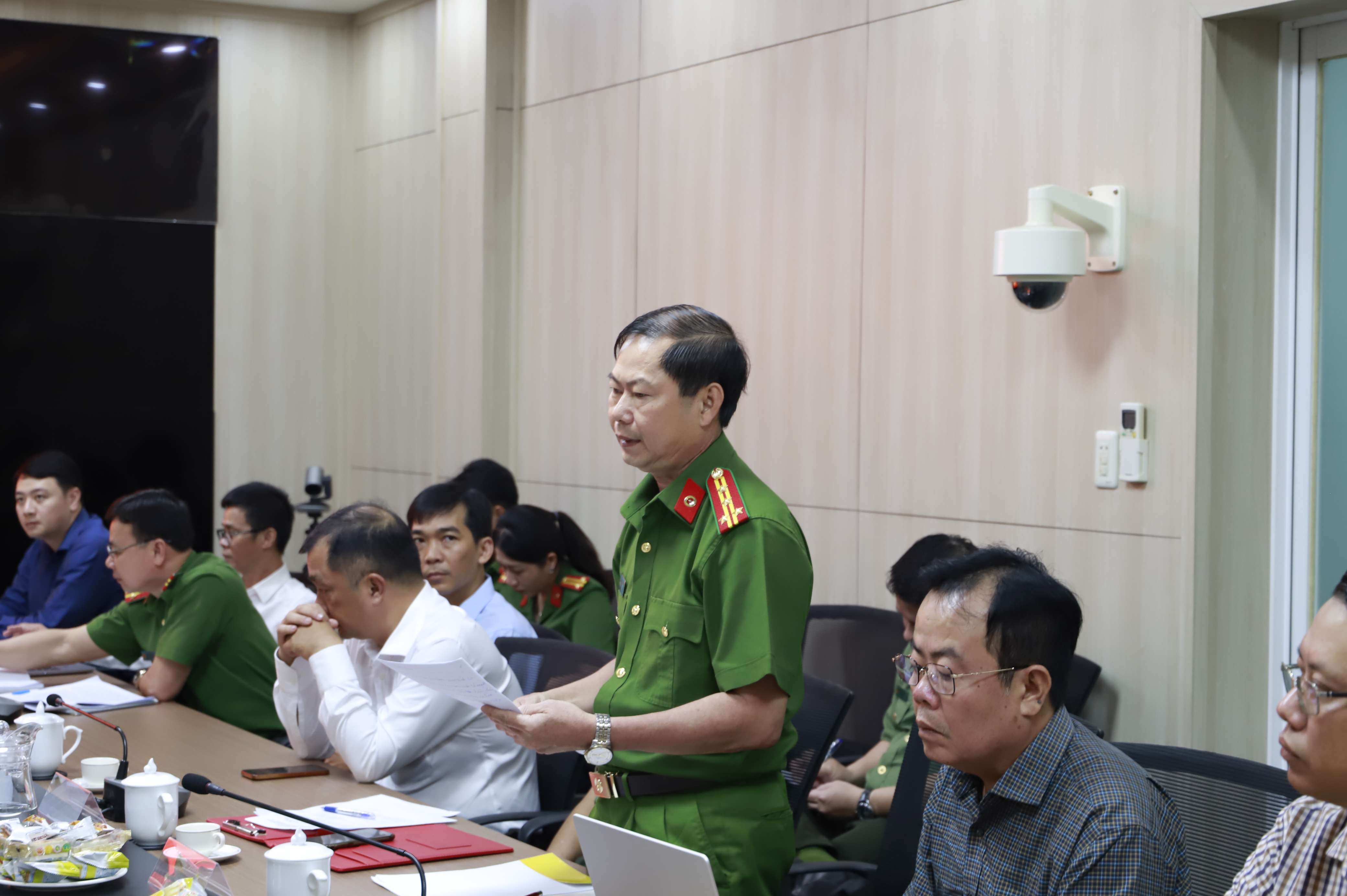 Đồng chí Trần Văn Hòa, Phó Giám đốc Công an tỉnh Sóc Trăng phát biểu tại buổi làm việc