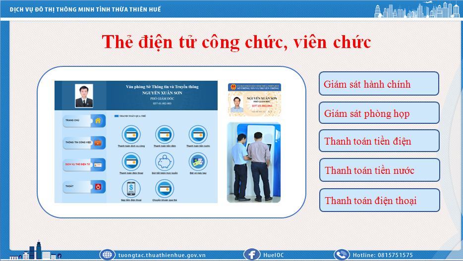Giải pháp chuyển đổi thẻ công chức, viên chức từ thẻ nhựa qua thẻ công nghệ (Thẻ chip). Qua đó, việc quẹt thẻ khi vào cơ quan nhà nước hoặc tham gia các buổi họp, hội nghị là công cụ hỗ trợ cho việc nâng cao chất lượng giám sát hành chính, chất lượng các cuộc họp, hội nghị do UBND tỉnh và các cơ quan chuyên môn tổ chức.