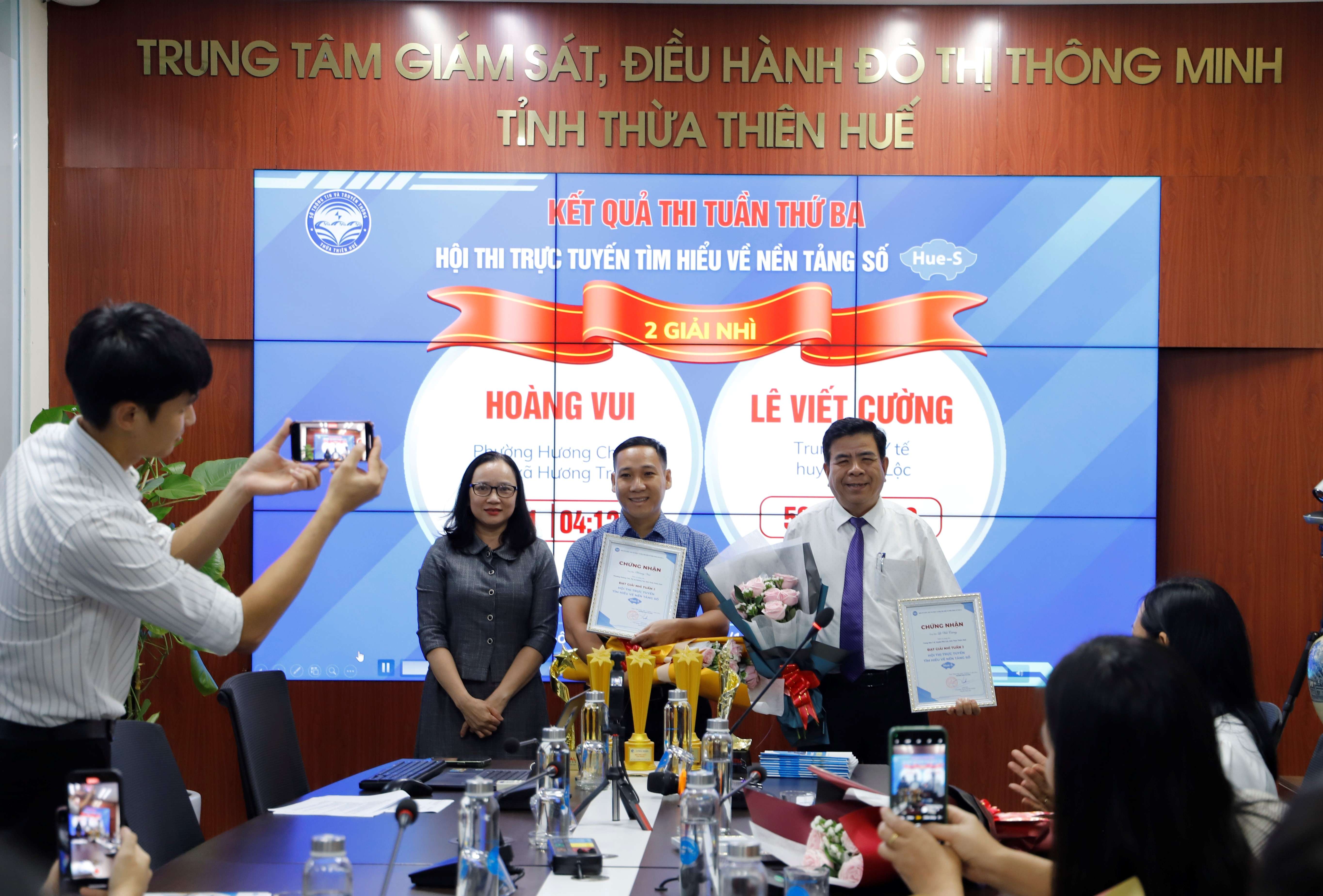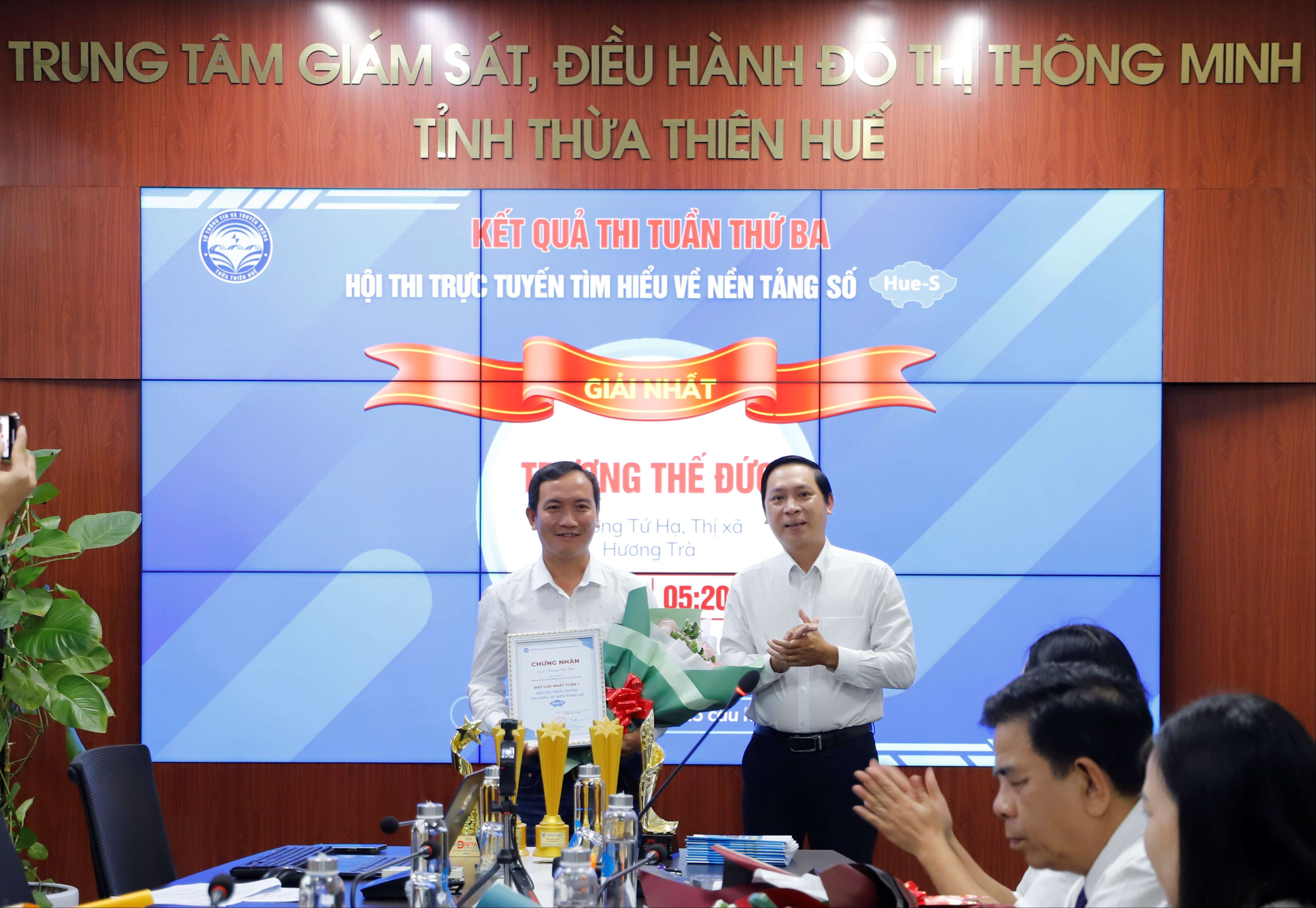 Chiều ngày 13/11, Ban tổ chức Hội thi trực tuyến tìm hiểu về nền tảng số Hue-S đã tổ chức Lễ trao giải Tuần thứ ba của Hội thi tại Trung tâm Giám sát, điều hành đô thị thông minh tỉnh.