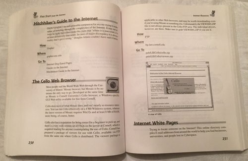 Nói thì nói thế, nó không tập trung vào giá trị của mạng Internet dưới dạng một công cụ liên lạc và tìm kiếm thông tin hữu ích, mà hướng dẫn cách bạn có thể tải về những chương trình gì mà hoàn toàn miễn phí. Cuốn sách tập trung nhiều vào những nguồn thông tin mở như từ các trường đại học hay từ chính NASA. Tuy nhiên, chẳng ai có thể ấn vào đường link trên quyển sách để truy cập được vào trang web cả, sách cũng in kèm theo một lời cảnh báo rằng link có thể không hoạt động hoặc nhiễm virus.