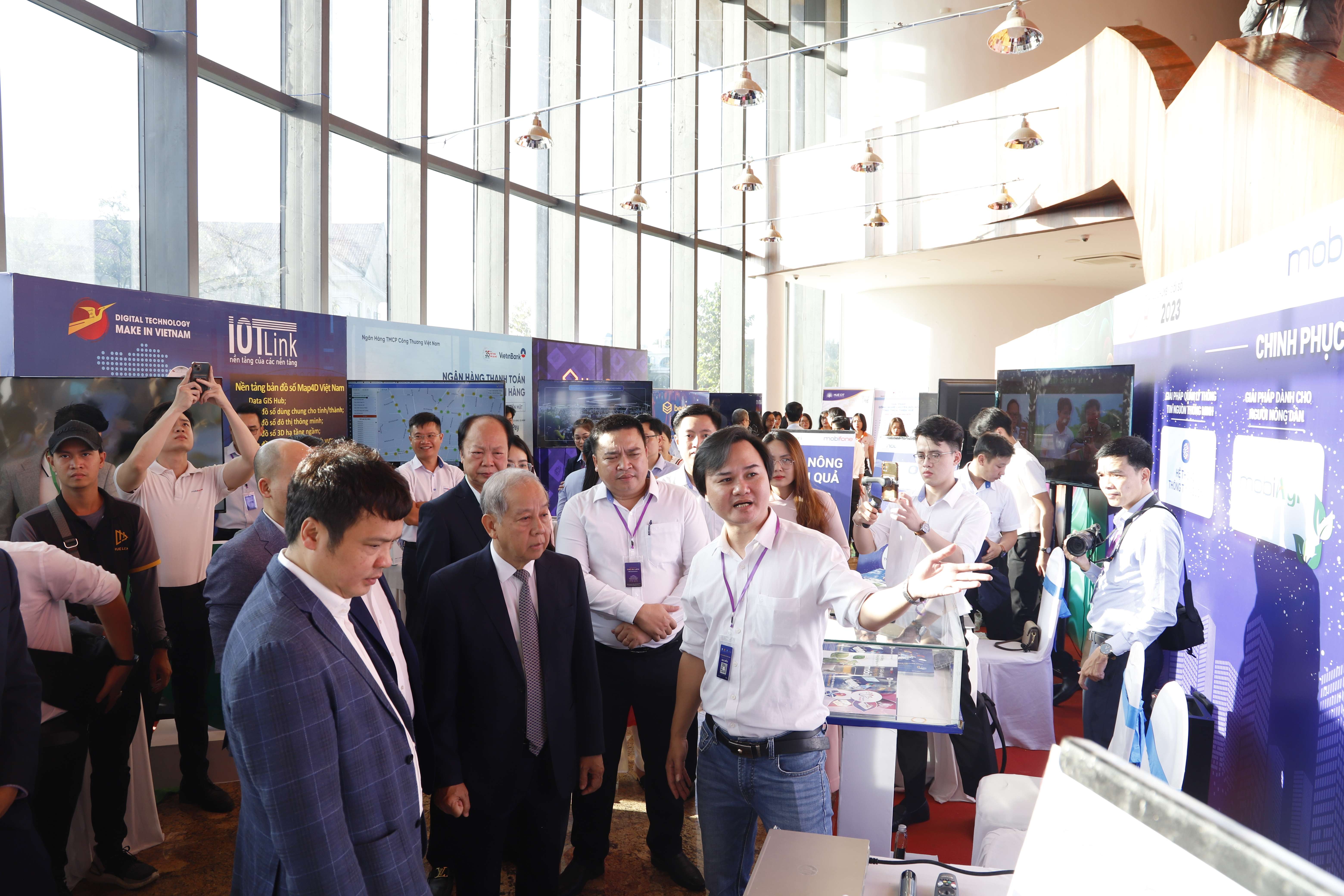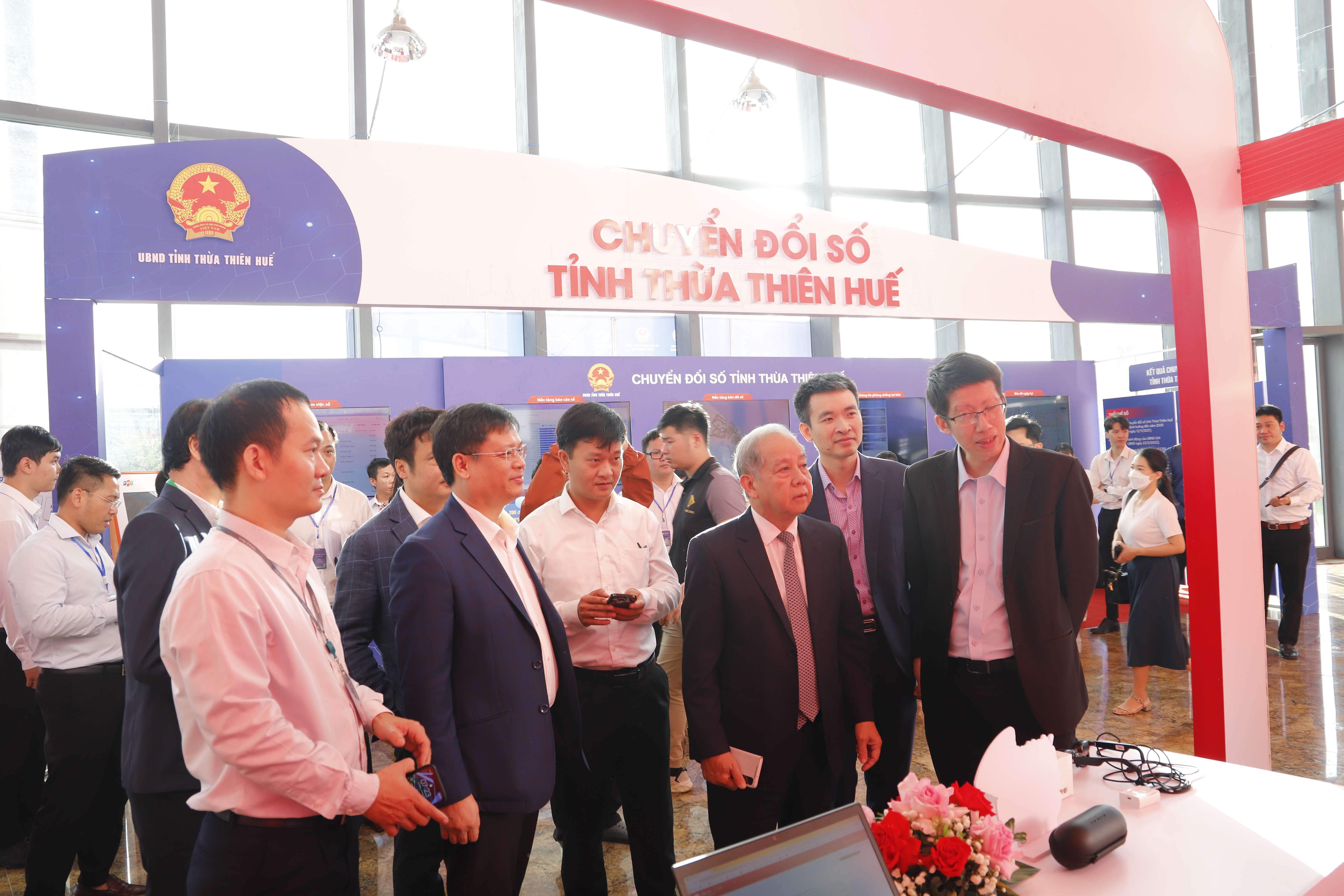 Lãnh đạo tham quan gian hàng triển lãm Chuyển đổi số tỉnh Thừa Thiên Huế