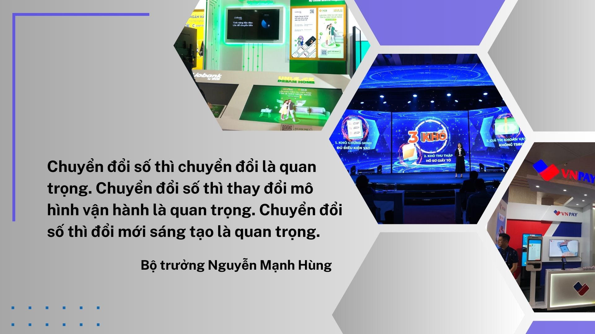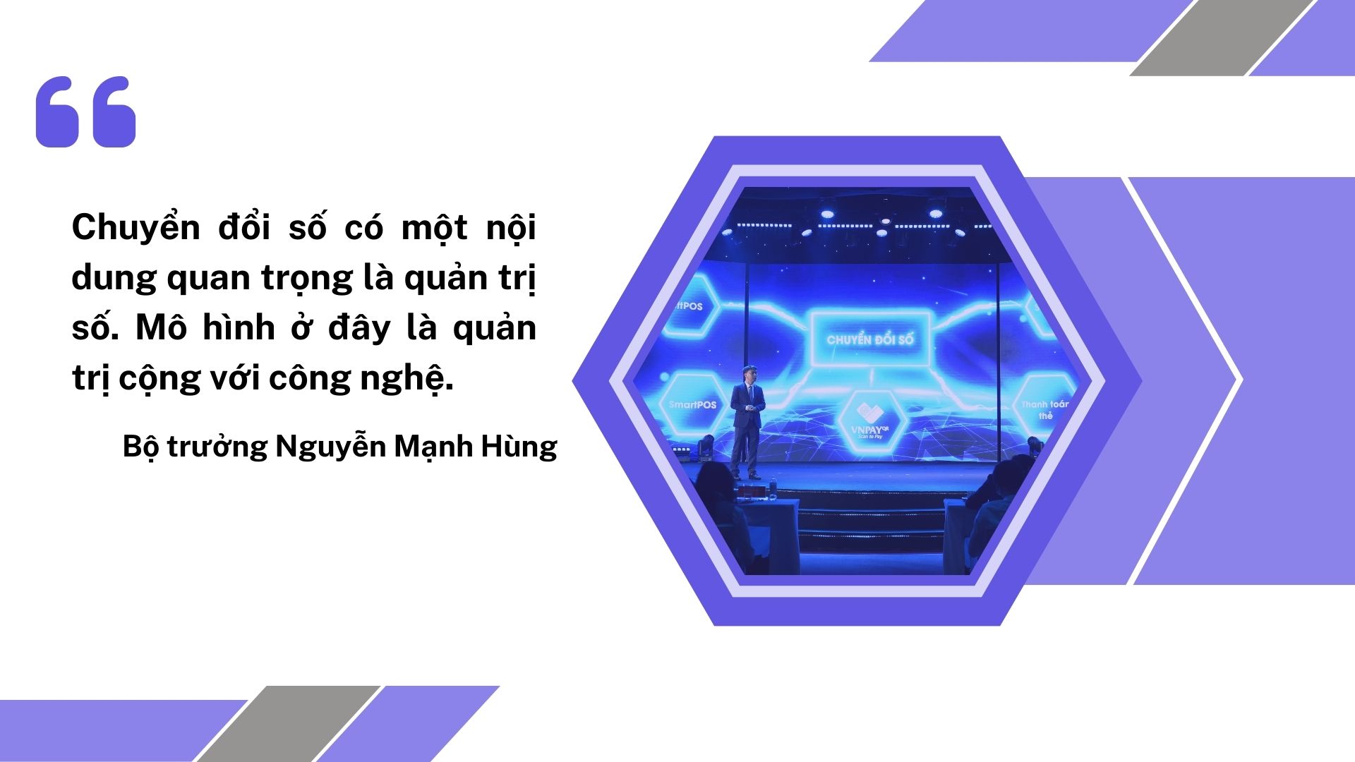 Phát biểu tại sự kiện Chuyển đổi số ngành ngân hàng 2023 do Ngân hàng Nhà nước tổ chức ngày 18/5/2023 với chủ đề “Ứng dụng dữ liệu dân cư trong hoạt động ngân hàng - động lực thúc đẩy chuyển đổi số”, Bộ trưởng Bộ TT&TT Nguyễn Mạnh Hùng nhận định: Ngành Ngân hàng là ngành có điều kiện về nhân lực, tài lực, lại là ngành hội nhập cao, là ngành có tư duy đổi mới. Bộ TT&TT rất mong muốn Thống đốc, ngành Ngân hàng đi đầu về CĐS quốc gia để ngành Ngân hàng Việt Nam thuộc nhóm đầu về CĐS, tạo ra sự phát triển mới cho ngành và gây cảm hứng cho cả đất nước về CĐS.