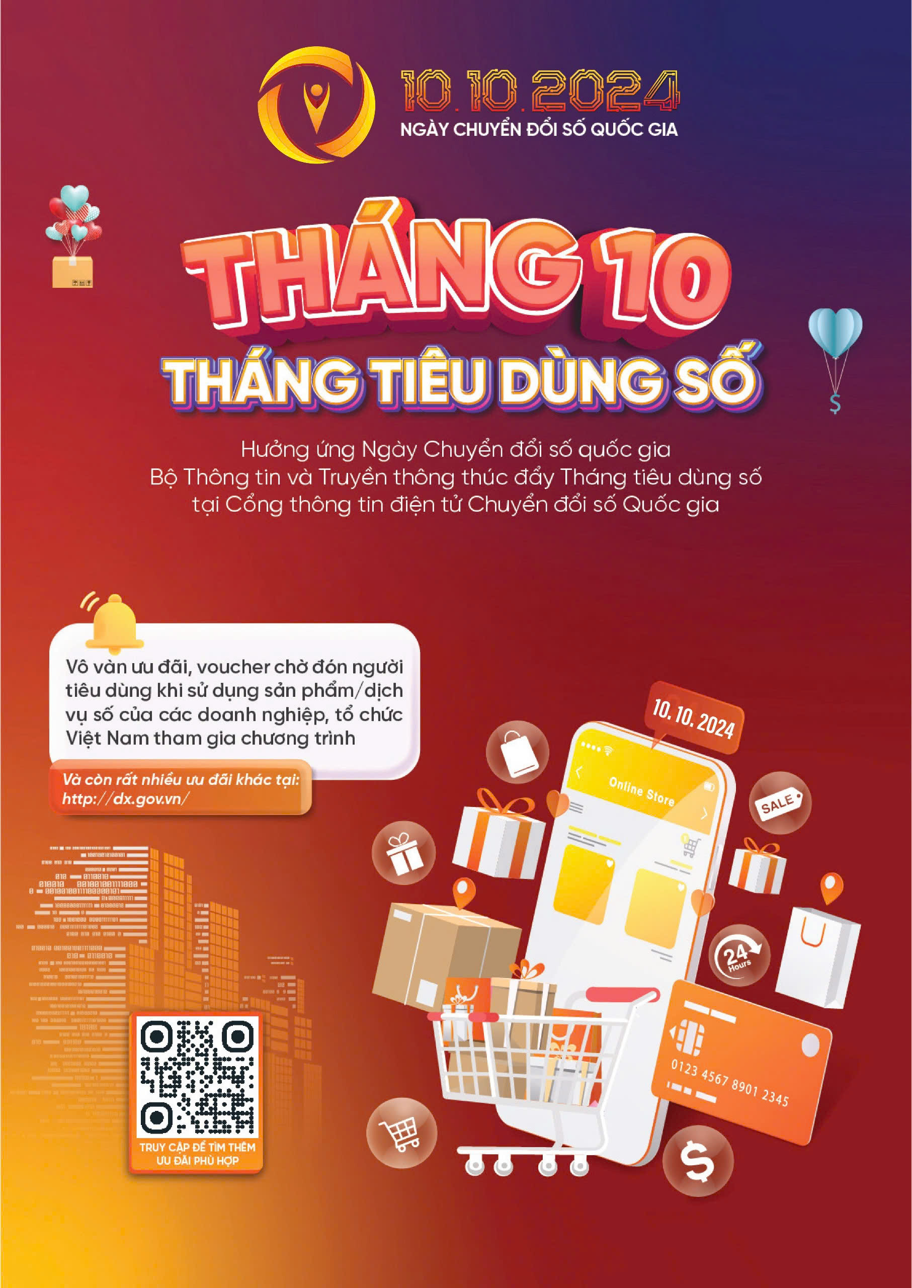 Hưởng ứng Ngày Chuyển đổi số Quốc gia (10/10/2024), Bộ Thông tin và Truyền thông phát động chương trình “Tháng 10. Tháng tiêu dùng số” từ ngày 01/10 đến 31/10/2024 với cao điểm là 10 ngày đầu tháng.