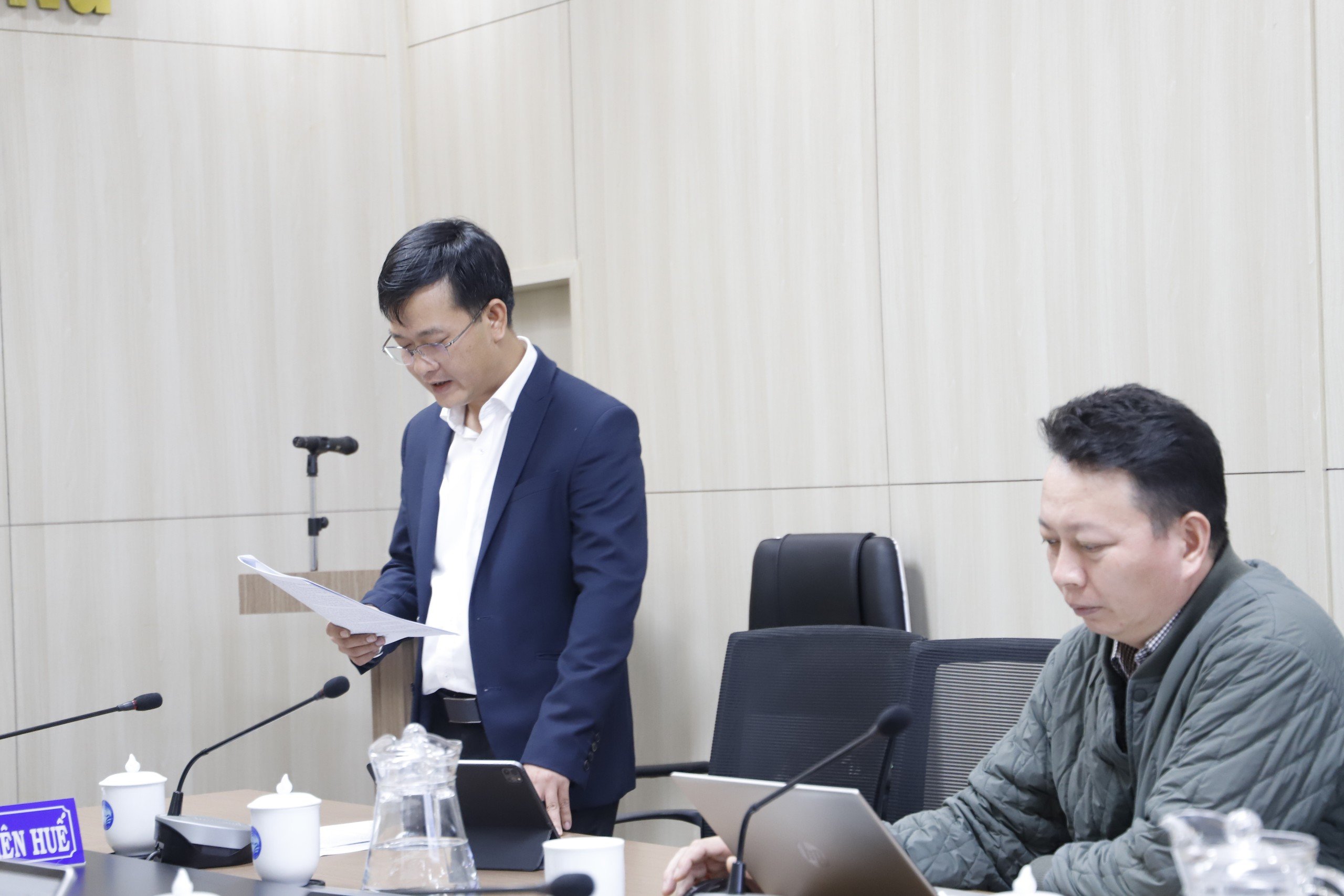 Giám đốc Sở Thông tin và Truyền thông Nguyễn Xuân Sơn báo cáo tại buổi làm việc