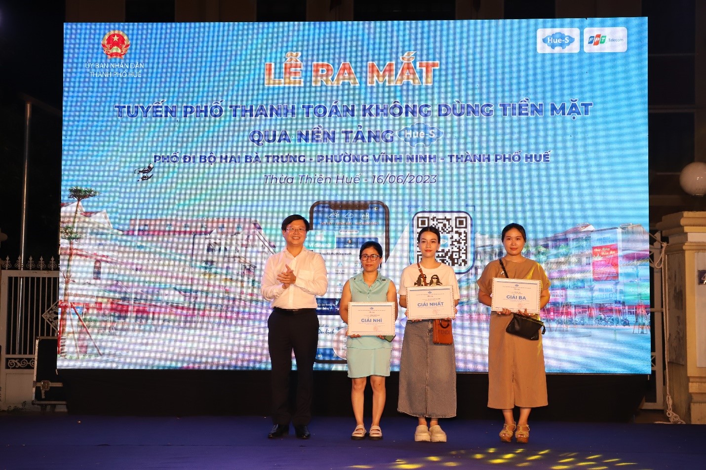 Tại buổi lễ, Ban tổ chức đã trao giải Nhất, Nhì, Ba cho 03 cửa hàng tại phố đi bộ Hai Bà Trưng có nhiều lượt thanh toán qua Hue-S nhất từ ngày 01/6 – 15/6/2023 nhằm khuyến khích các hộ kinh doanh cũng như khách hàng sử dụng ví điện tử khi mua sắm, thanh hóa các loại hàng hóa, dịch vụ.