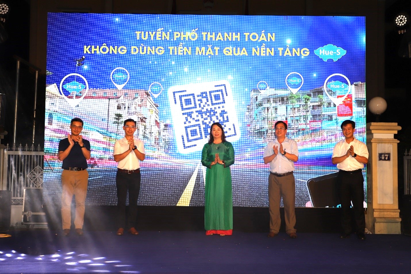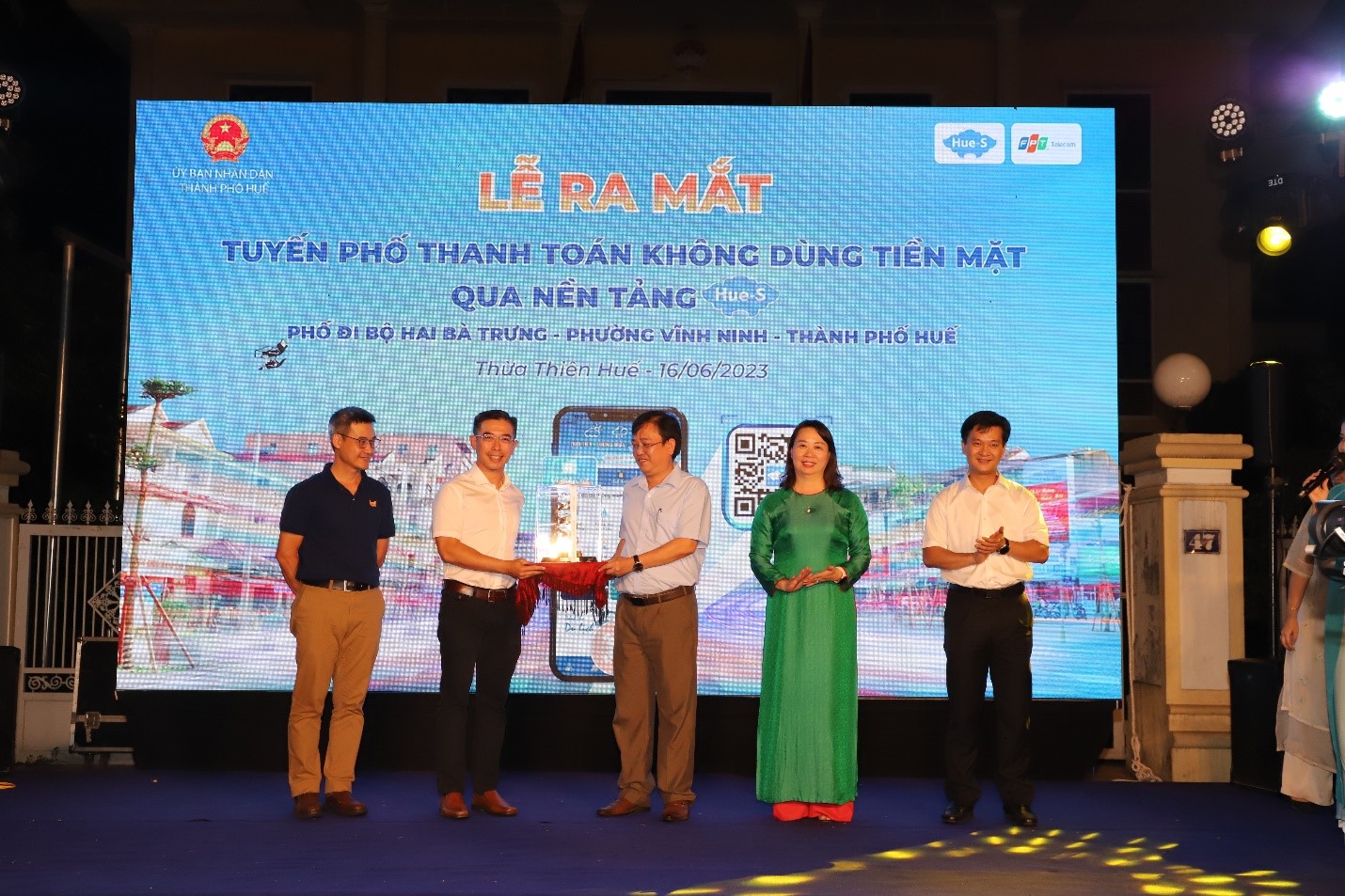 Để chuẩn bị cho Hai Bà Trưng trở thành tuyến phố thanh toán không dùng tiền mặt qua nền tảng Hue-S, từ tháng 5/2023, UBND thành phố Huế cùng Trung tâm IOC và Công ty FPT Telecom đã triển khai quảng bá truyền thông, tập huấn, hỗ trợ các tiểu thương trên địa bàn kết nối thanh toán bằng Hue-S. Theo đó, tại mỗi cửa hàng đều dán mã QR cho phép người dân quét mã thanh toán hàng hoá dịch vụ bằng ứng dụng đô thị thông minh Hue-S có liên kết tài khoản Ví điện tử, hoặc với thẻ ATM của 40 ngân hàng trong nước, thẻ quốc tế của 4 tổ chức Visa, MasterCard, JCB và American Express.