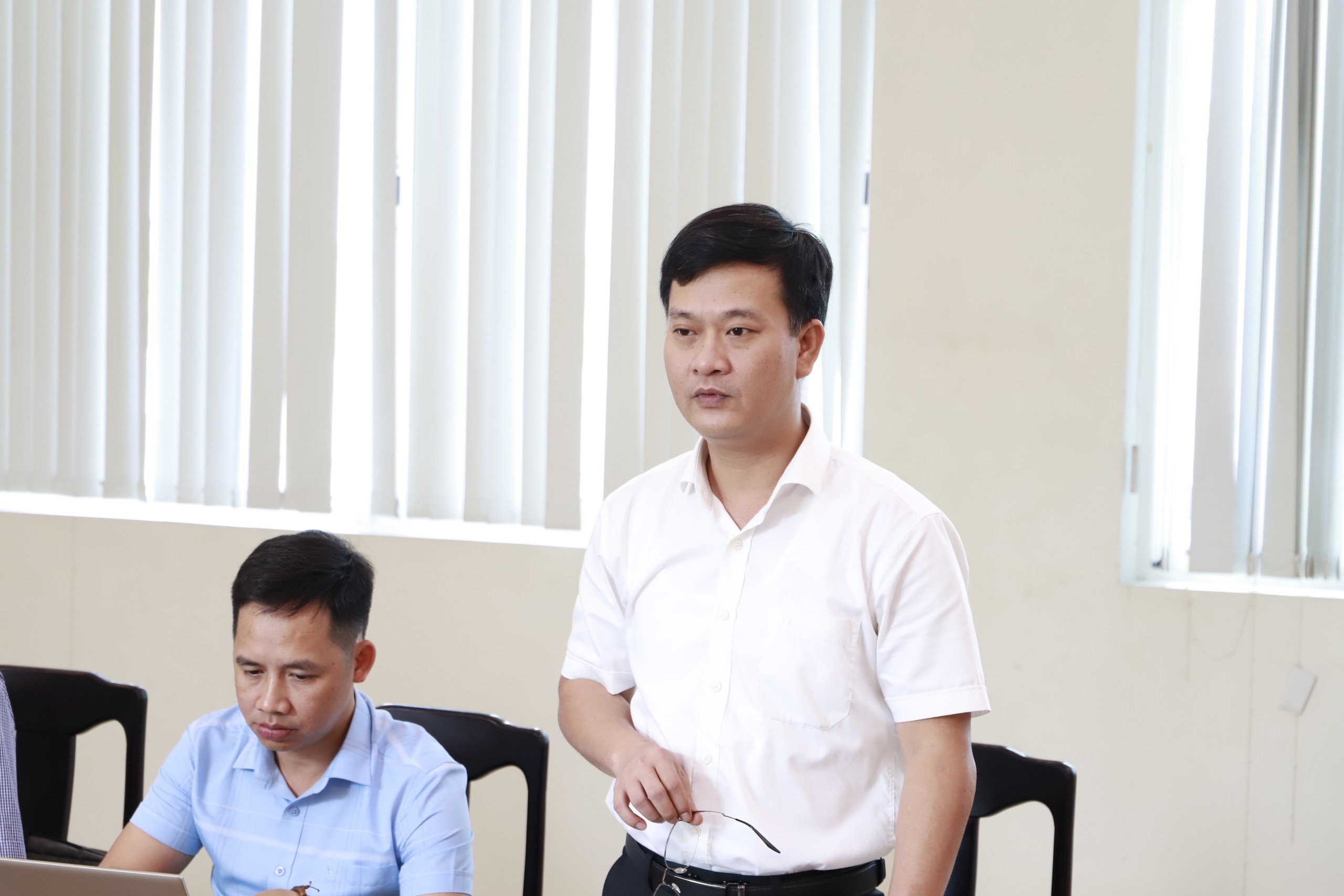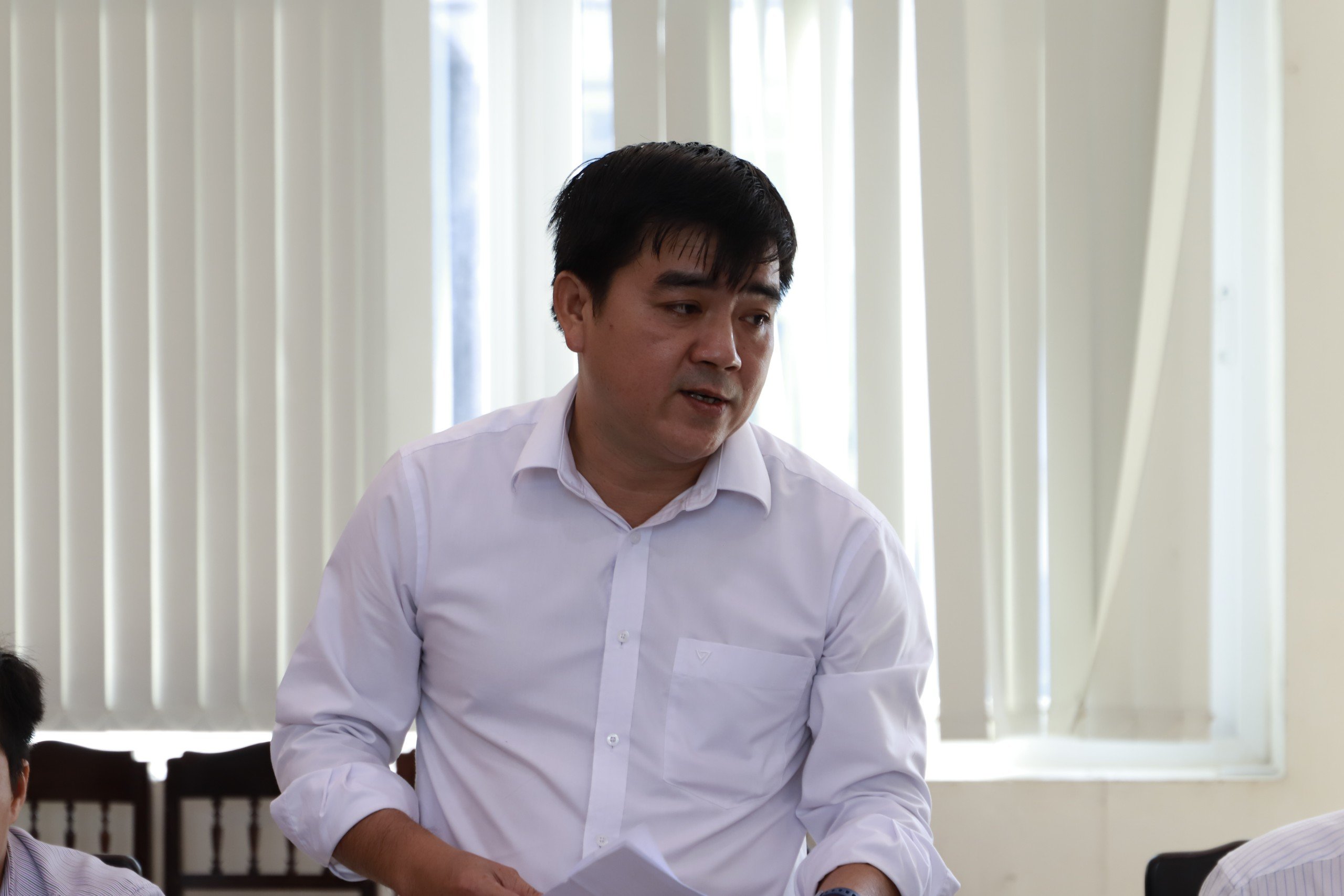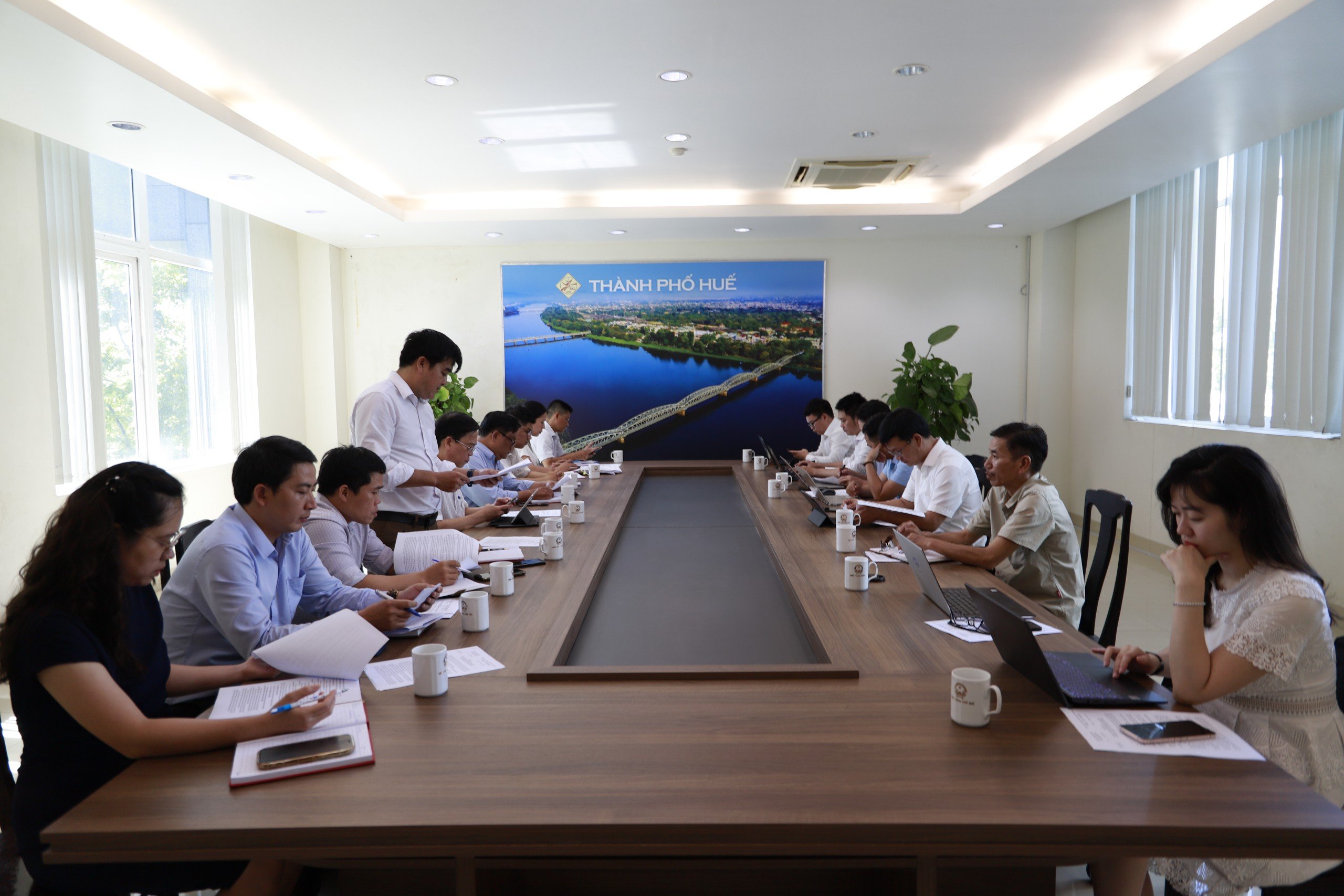 Đồng chí Nguyễn Đông Phương - Phó Trưởng phòng VHTT Thành phố Huế trình báo cáo tại buổi làm việc