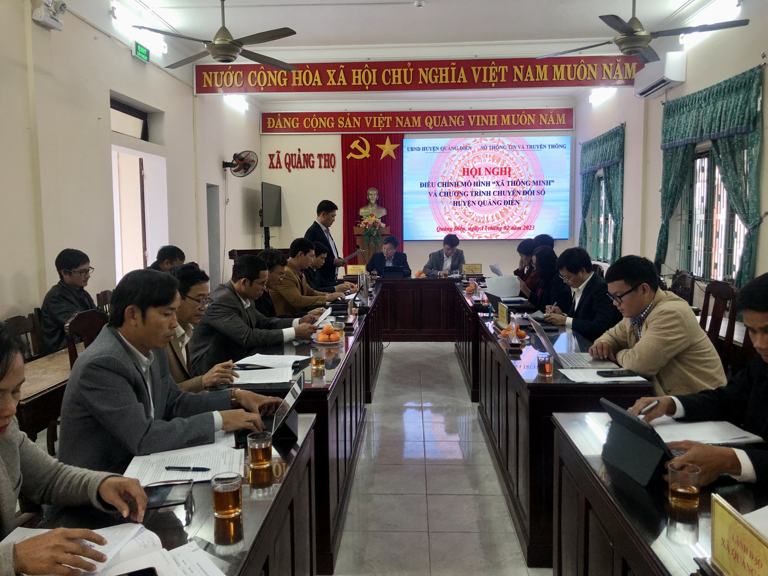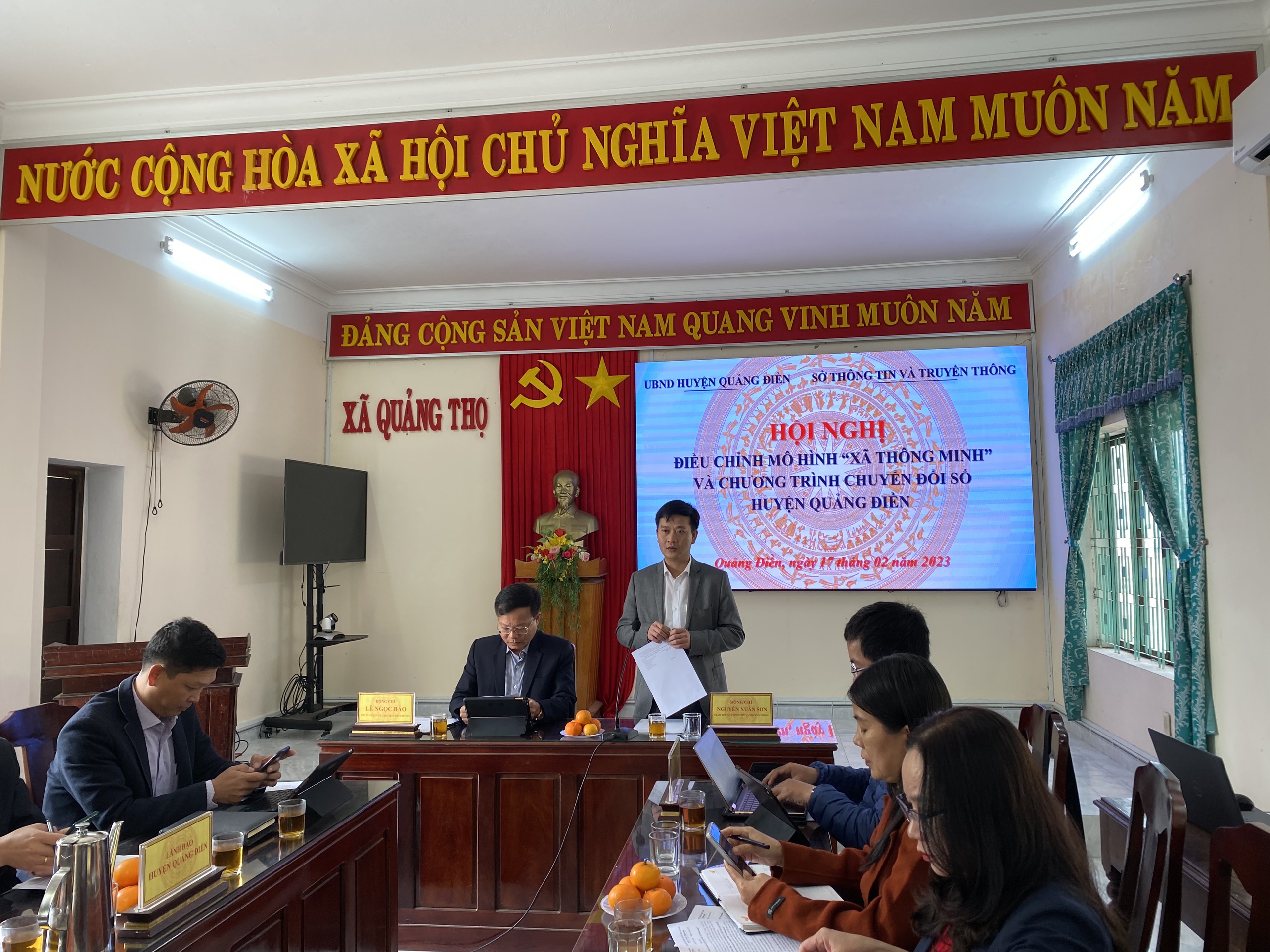 Sáng ngày 17/02/2023, tại UBND xã Quảng Thọ, huyện Quảng Điền, Sở Thông tin và Truyền thông đã có buổi làm việc với UBND huyện Quảng Điền về việc điều chỉnh mô hình “xã thông minh” và chương trình chuyển đổi số trên địa bàn huyện.