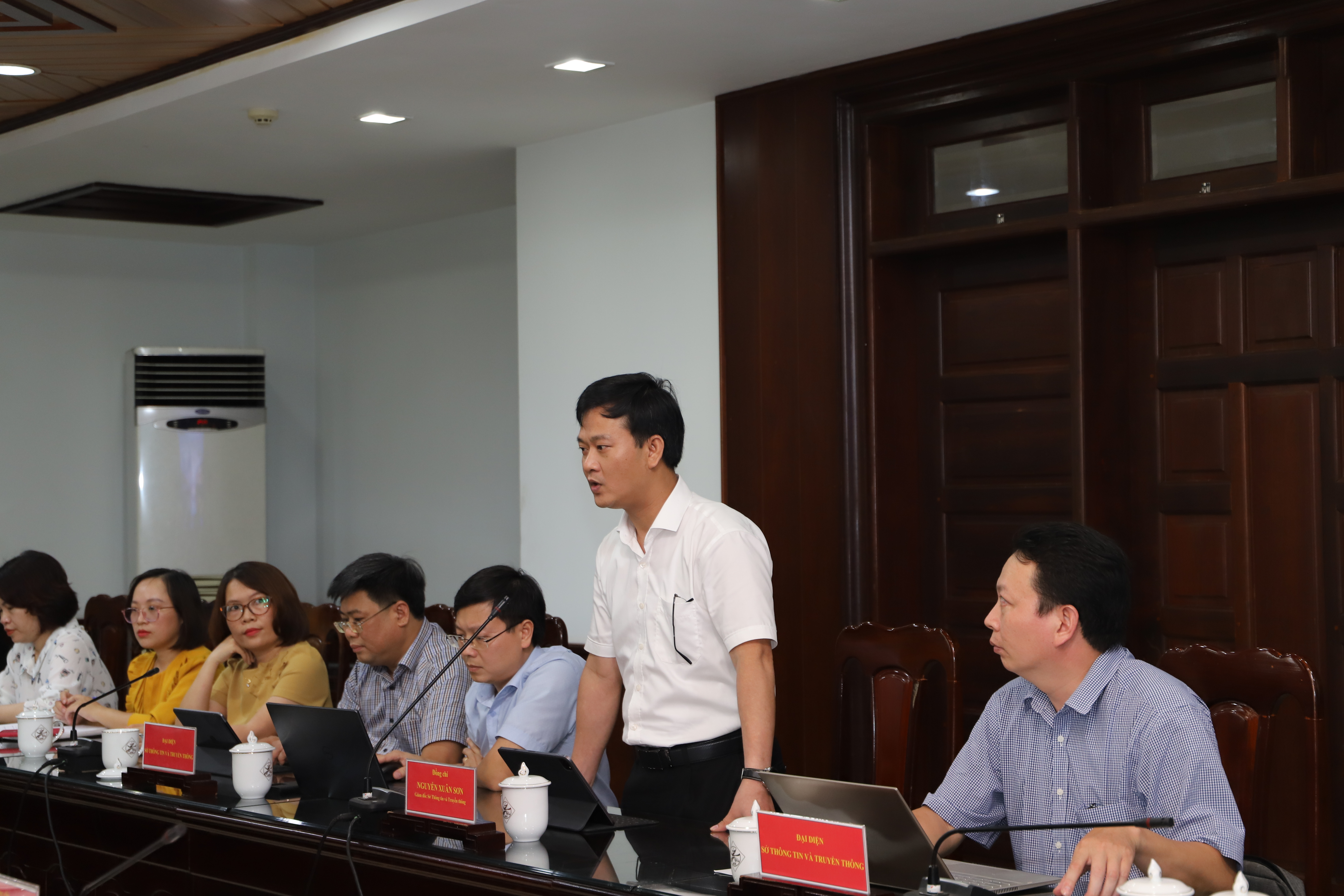 Giám đốc Sở Thông tin và Truyền thông Nguyễn Xuân Sơn báo cáo tình hình triển khai