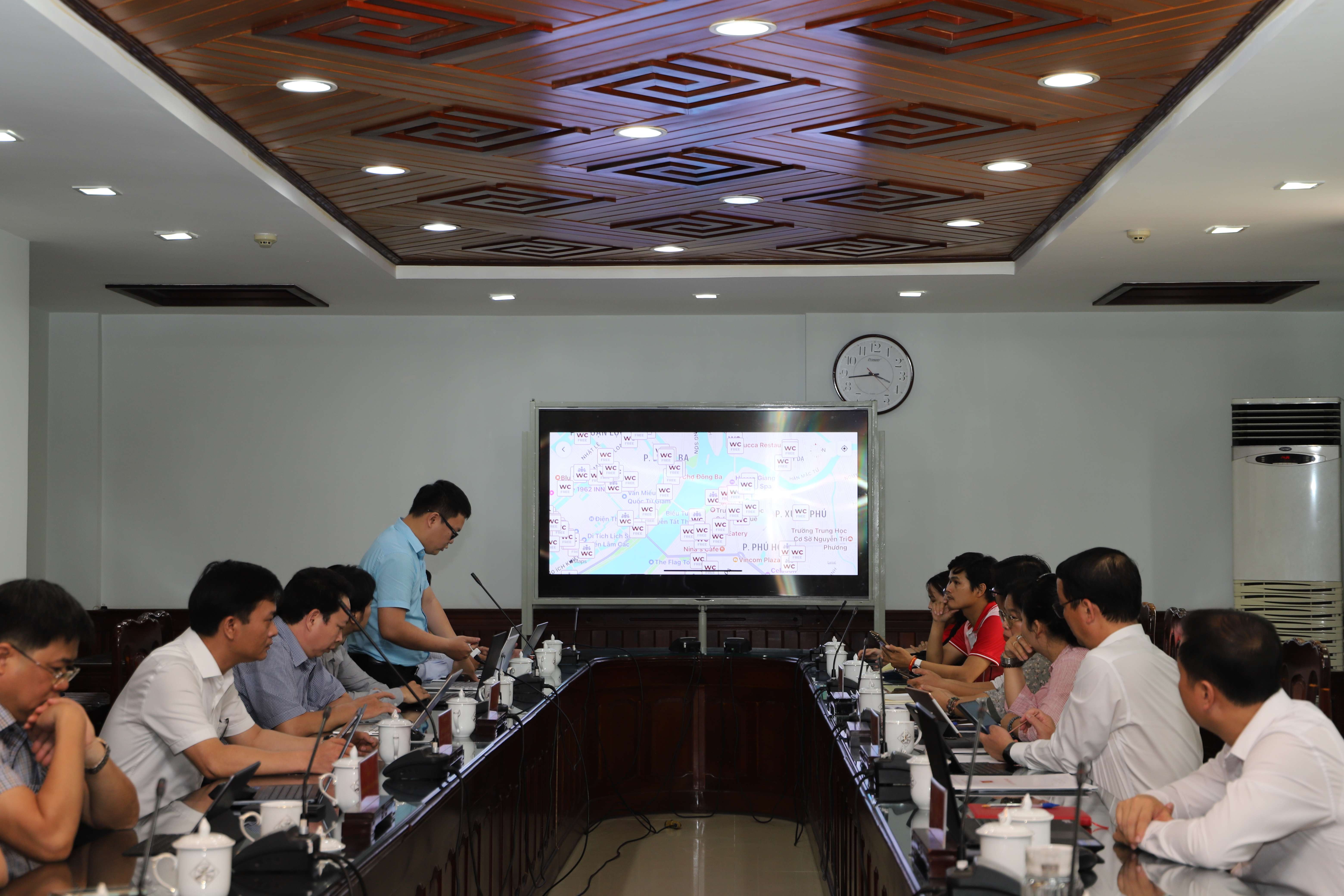 Hội nghị đã được đại diện Trung tâm IOC báo cáo kết quả triển khai xây dựng chức năng tra cứu “Nhà vệ sinh”. Theo đó, chức năng đã được xây dựng thành công và tích hợp tại giao diện chính của vai trò dành cho khách du lịch trên nền tảng Hue-S. Chức năng hỗ trợ du khách, người dùng tra cứu vị trí, thông tin chi tiết các điểm nhà vệ sinh công cộng, nhà vệ sinh miễn phí trên bản đồ số; hệ thống còn hỗ trợ cung cấp khoảng cách và chỉ đường.