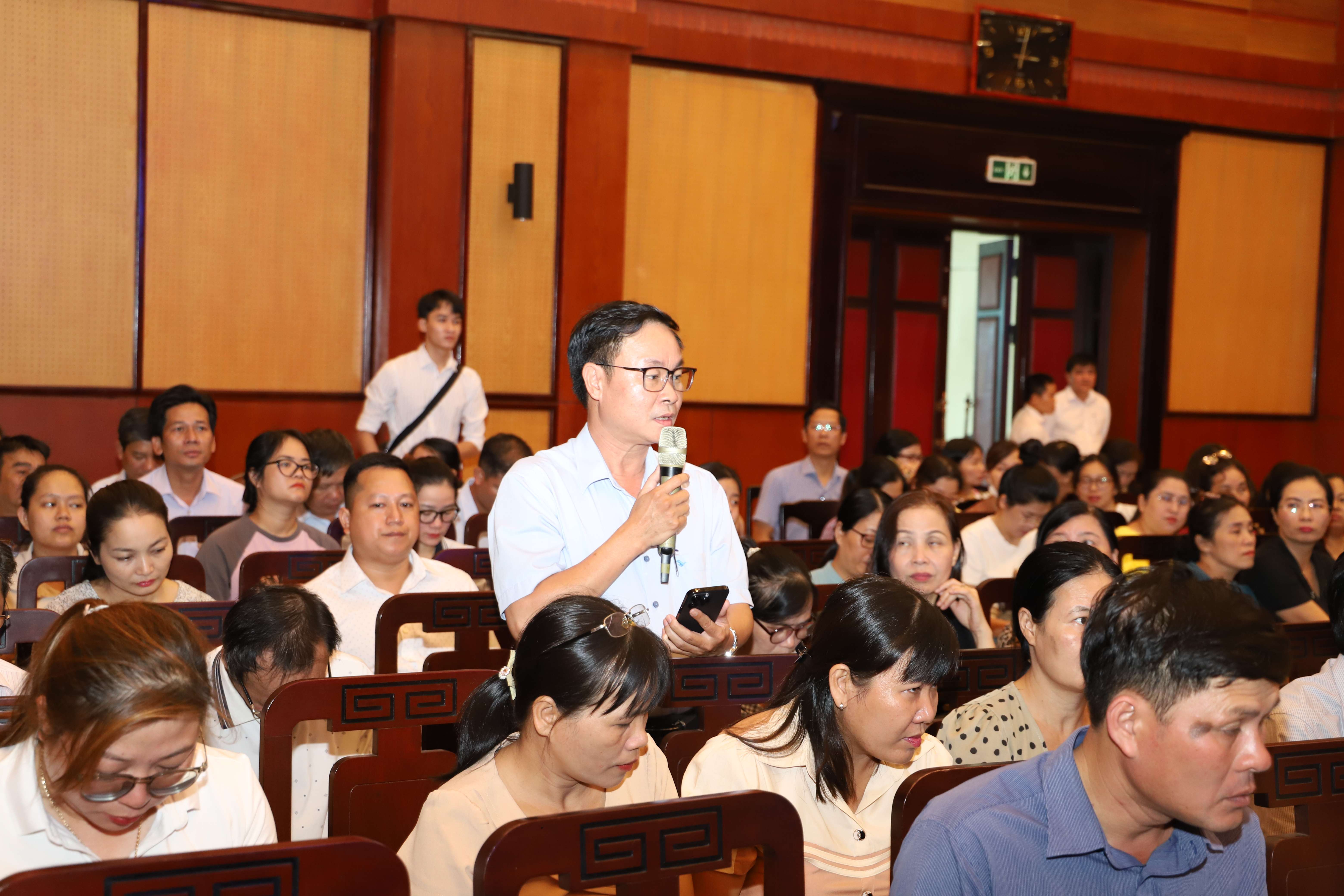 Đồng chí Nguyễn Mạnh Tiến - Phó Trưởng phòng Giáo dục và Đào tạo thành phố Huế phát biểu tại hội nghị