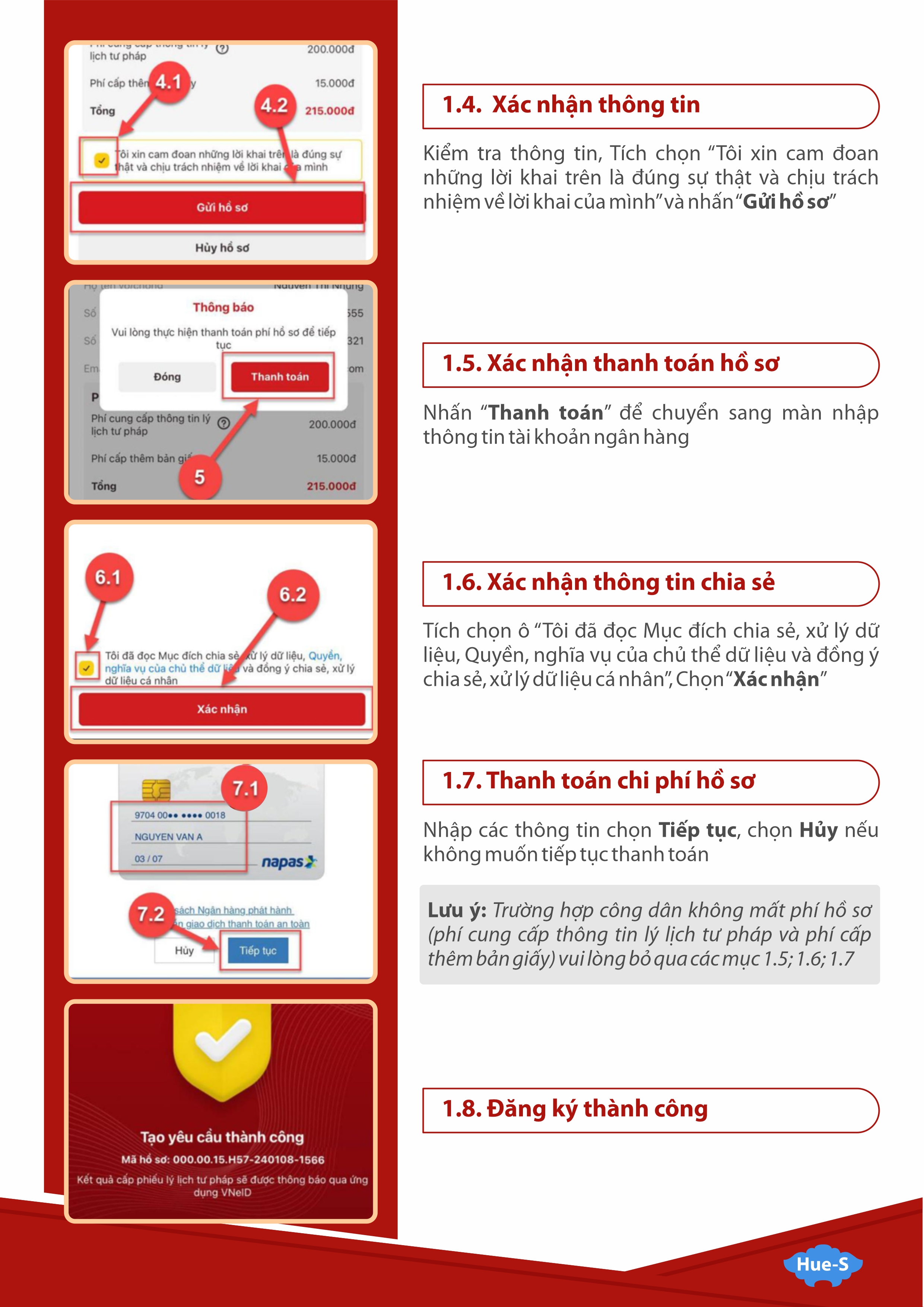 Các trường hợp chưa có tài khoản định danh điện tử VNeID mức độ 2, trường hợp thuộc đối tượng miễn, giảm phí cung cấp thông tin lý lịch tư pháp có nhu cầu được cấp Phiếu lý lịch tư pháp vẫn có thể thực hiện trên Hệ thống thông tin giải quyết thủ tục hành chính thành tỉnh Thừa Thiên Huế (https://dichvucong.thuathienhue.gov.vn). Trường hợp đối tượng thuộc diện miễn, giảm phí cung cấp thông tin lý lịch tư pháp nếu có nhu cầu nộp cấp Phiếu lý lịch tư pháp trên VNeID vẫn thực hiện nộp phí theo quy định.