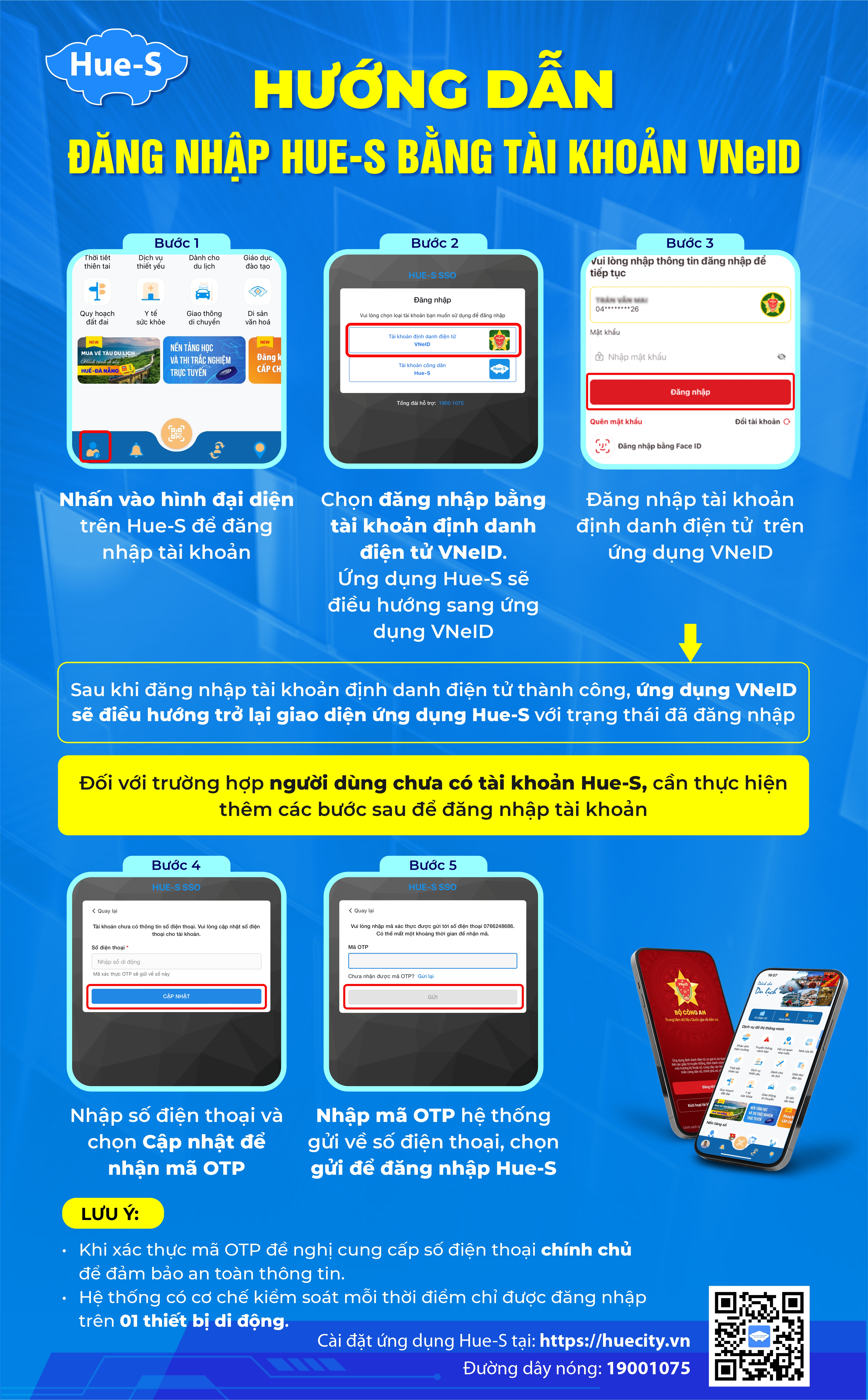 Sau khi kích hoạt, các hoạt động đăng nhập tài khoản vào Hue-S và các ứng dụng khác đều được điều hướng và thực hiện đăng nhập thống nhất qua ứng dụng VNeID.